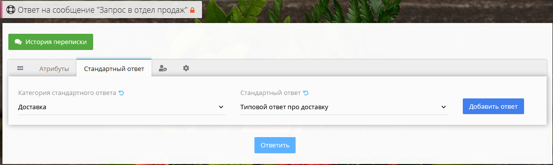 Закладка «Стандартный ответ»