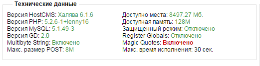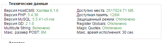 Сайт 2) проблема со входом админки скрин технических данных со старого хостинга