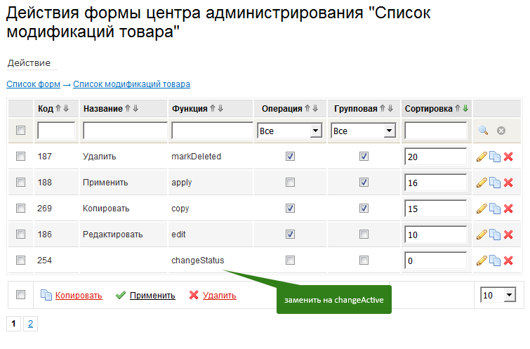 В модели shop_item изменилось название функции changeStatus => changeActive
