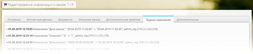 Журнал позволяет выяснить, кто отменил/изменил статус заказ, поставил статус оплаты, удалил товар из заказа или изменил цену у товара.