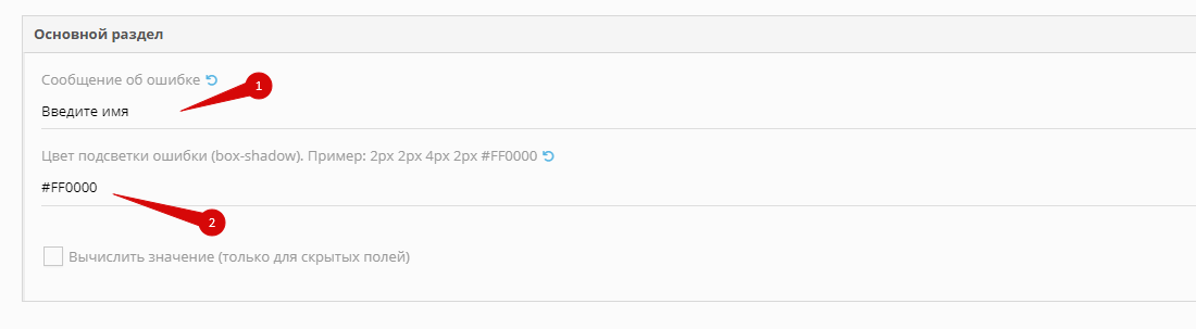 Если поле Сообщение об ошибке не заполнено, будет выведено сообщение "Заполните поле".