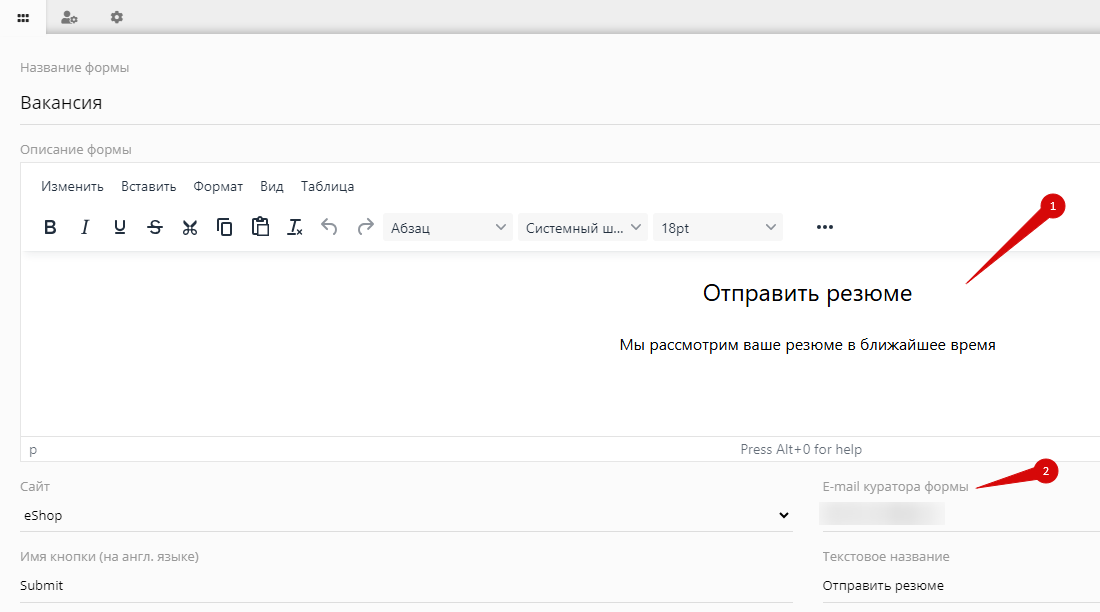 В описании формы можно добавить HTML-код или просто текст — он будет выведен в шапке формы.