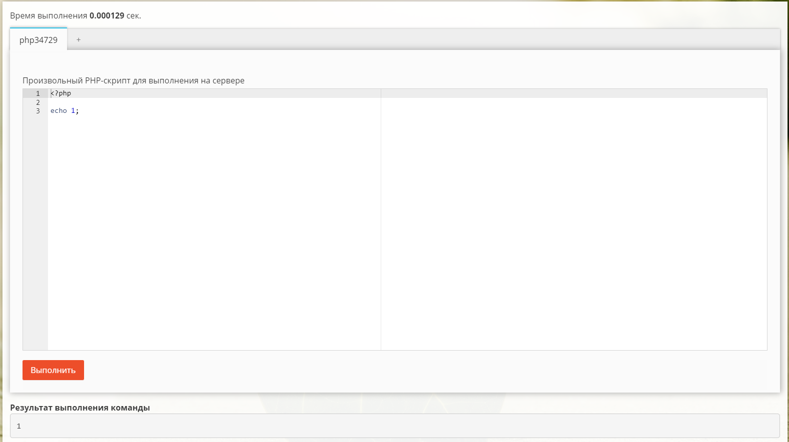 | 1.2 | 18.11.2021 | Добавлены вкладки для разных php кодов, теперь код после выполнения сохраняется, можно хранить разные коды для повседневного использования выполнение кода через eval() заменено на include |