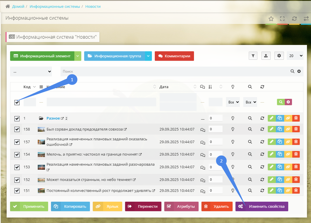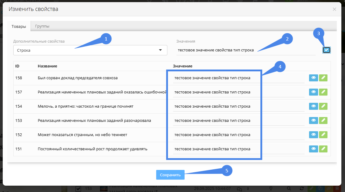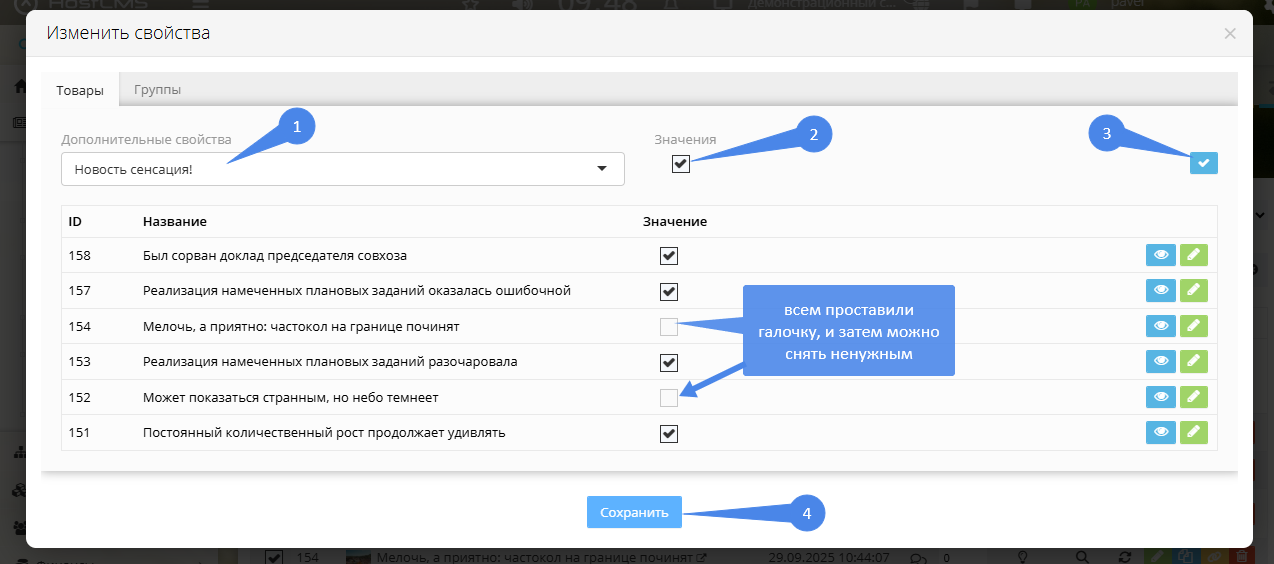 Массовое изменение дополнительных свойств инфосистем
