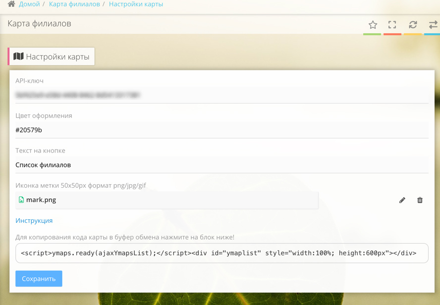Настройки карты