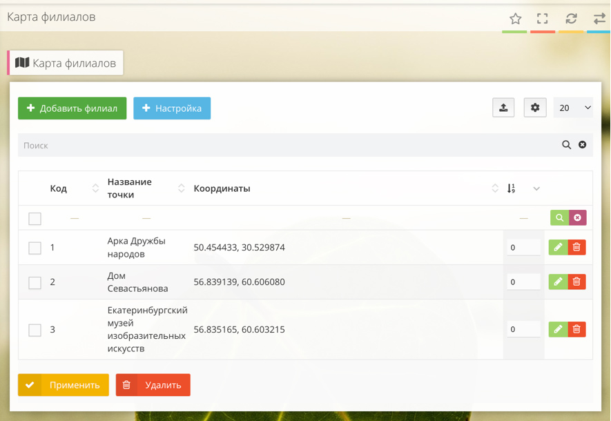 | 1.1 | 22.04.2024 | Карта филиалов | 6.9.5 | ∞ |