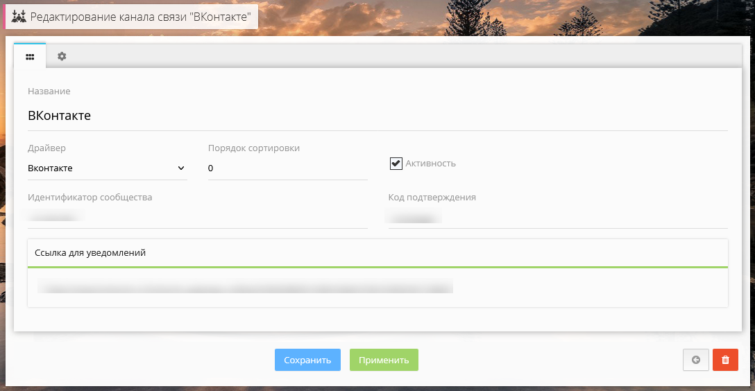 После сохранения сформируется ссылка для вебхука. необходимо отредактировать созданный канал связи и скопировать ссылку из блока Ссылка для уведомлений