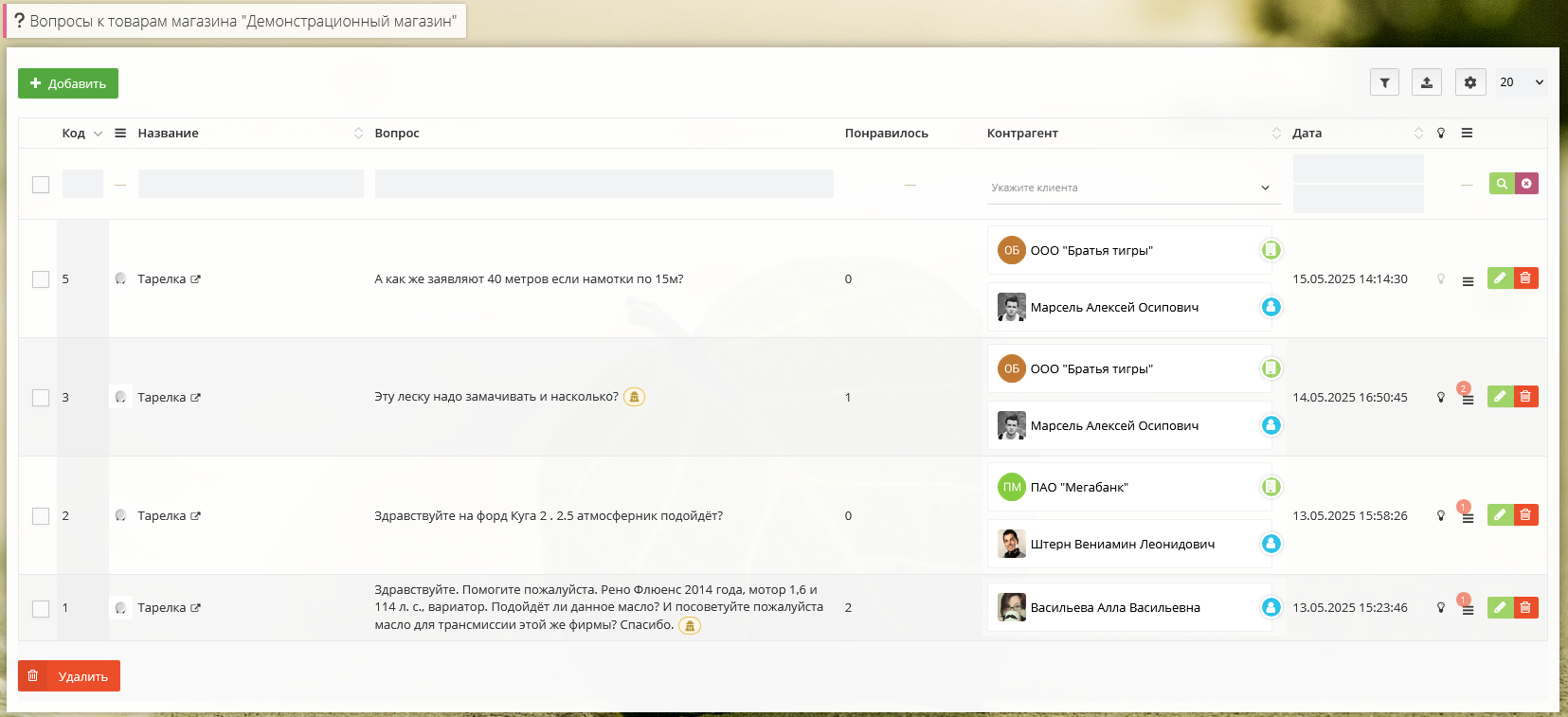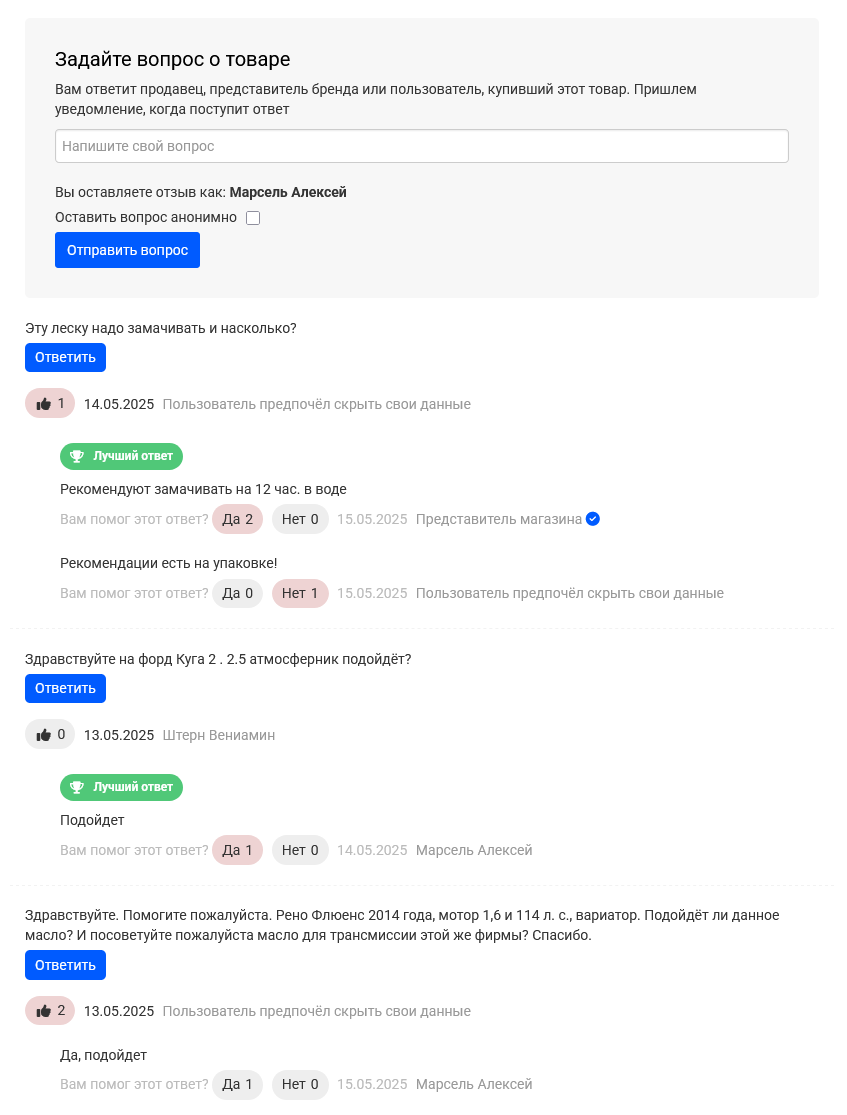 Вопросы могут добавлять только авторизованные клиенты, ответы - только те клиенты, которые приобрели товар.