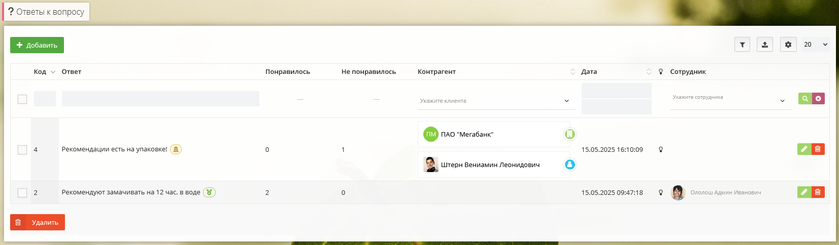 Вопросы к товарам