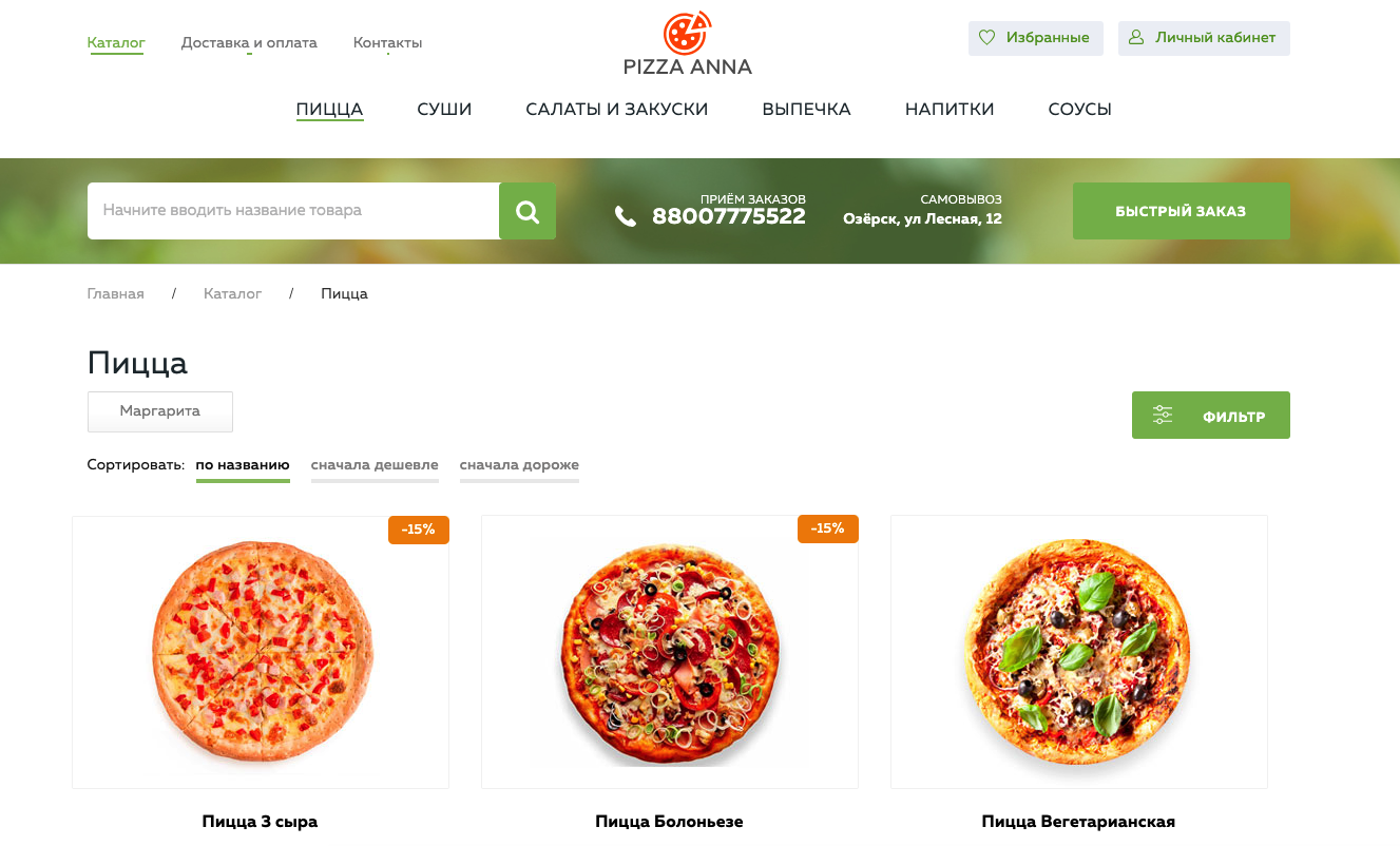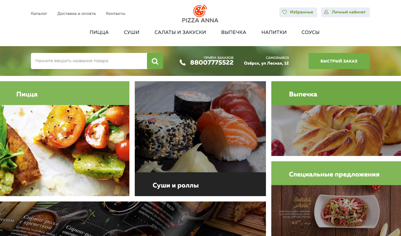Адаптивный интернет-магазин для ресторана или магазина продуктов питания с доставкой